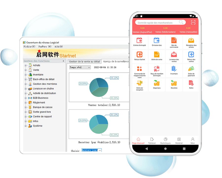 多语言ERP系统启网法文版进销存软件/ERP软件,提供采购、销售、库存、零售后台、内部分销、连锁配送、财务管理、零售前台收银等一系列功能,助力中小企业全球化。