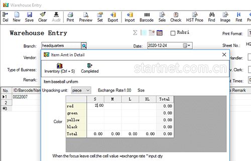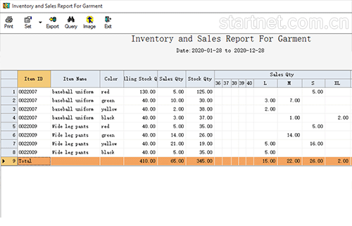 中英文版服装销售管理——销售开票颜色尺码二维表
