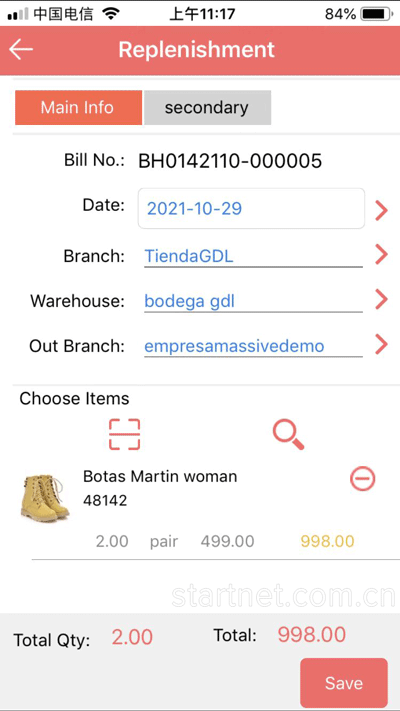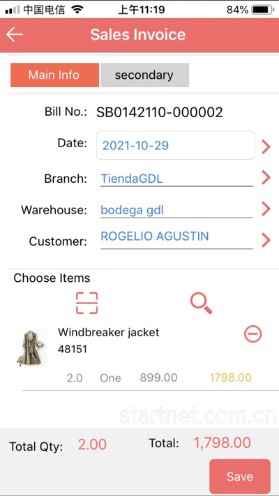 中英文服装APP端销售管理——销售开单颜色尺码表