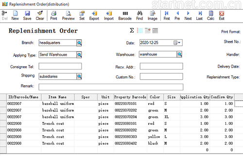 中英文版服装多门店库存管理——库存分布表颜色尺码多列