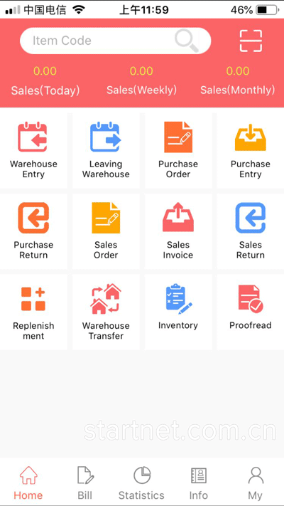 启网中英文进销存软件/中英文ERP软件APP端——功能主界面