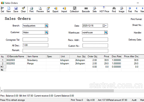 启网中英文进销存软件/中英文ERP软件PC端——软件主界面