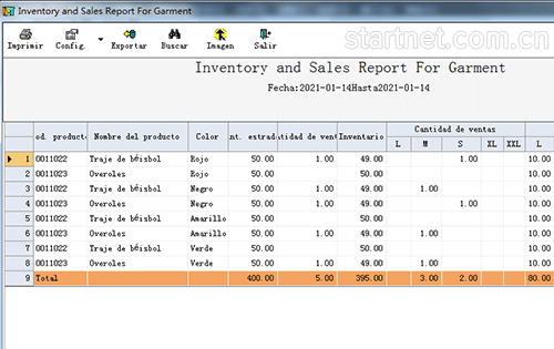 西班牙文版服装多门店库存管理——库存分布表颜色尺码多列