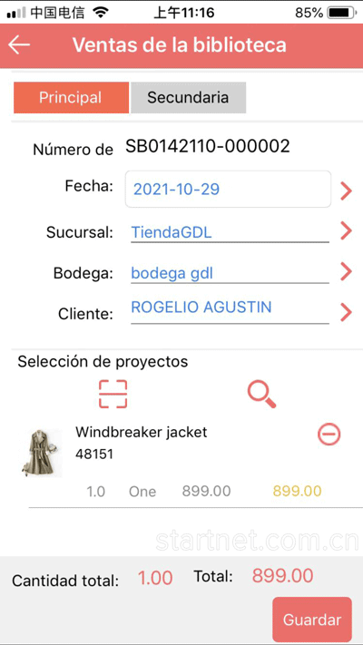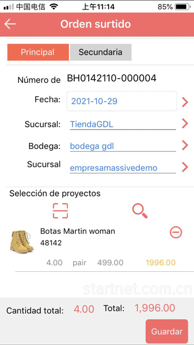 西班牙文服装APP端销售管理——销售开单颜色尺码表