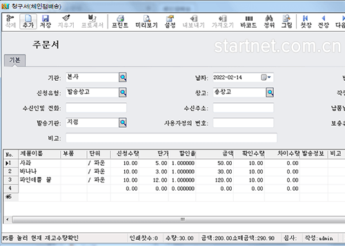 韩文版连锁配送——门店补货单韩文界面