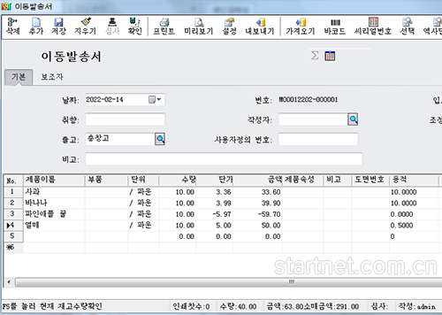 韩文版连锁配送——调拨送货单韩文界面
