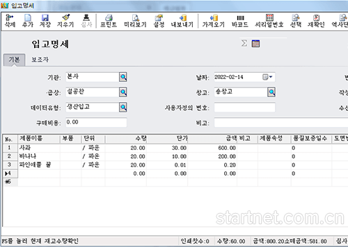 韩文版库存管理——入库单韩文界面