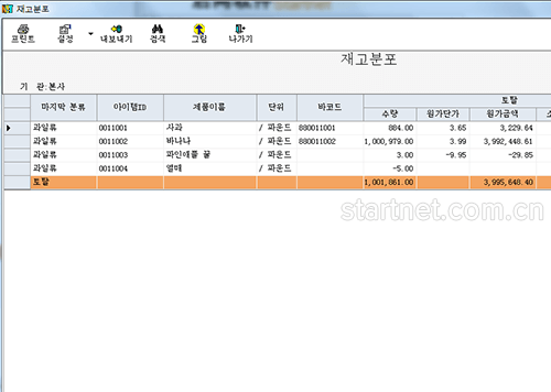 韩文版库存管理——货品明细账韩文界面