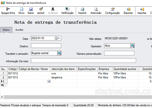 葡萄牙文版连锁配送——调拨送货单葡萄牙文界面