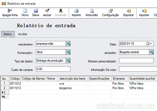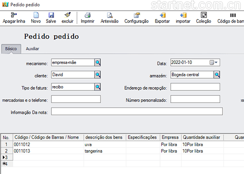 葡萄牙文版库存管理——入库单葡萄牙文界面