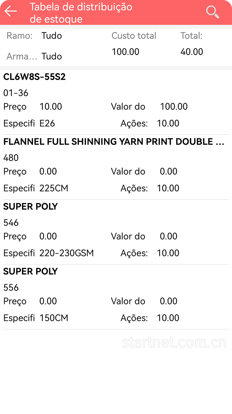 APP端多门店库存管理功能——库存分布表葡萄牙文界面
