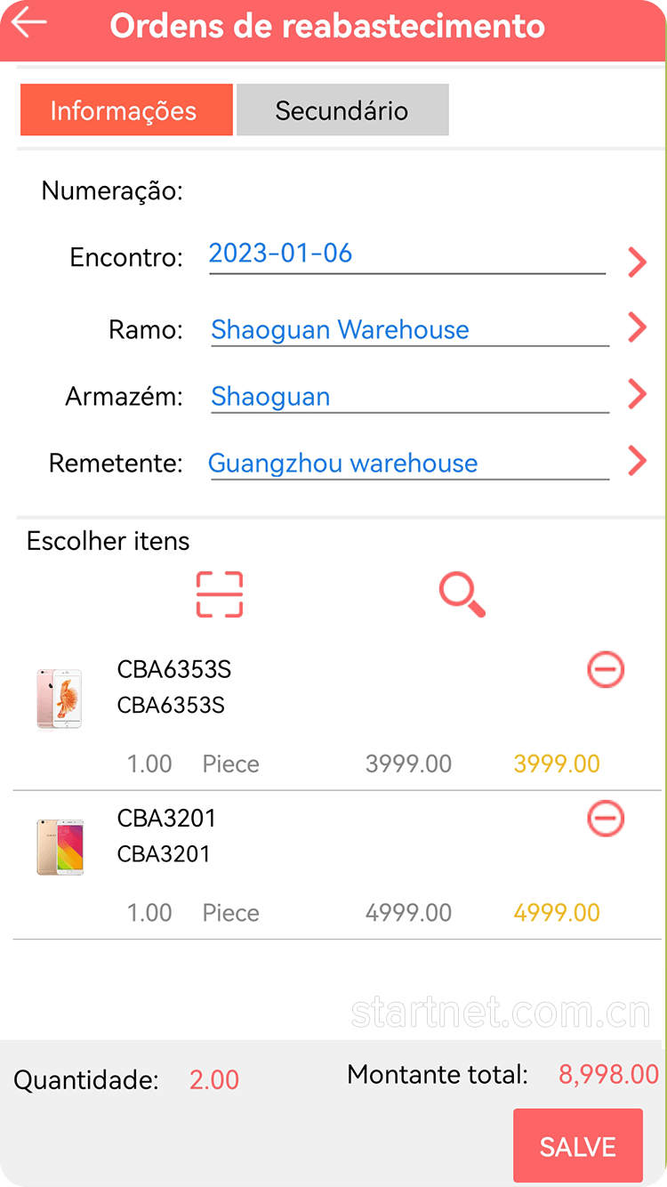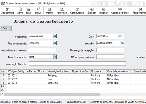 葡萄牙文版连锁配送——门店补货单葡萄牙文界面