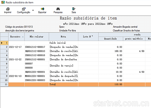 葡萄牙文版库存管理——货品明细账葡萄牙文界面