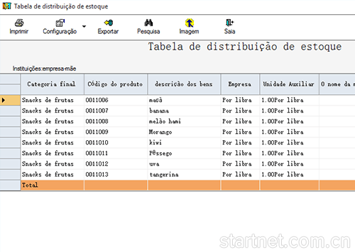 葡萄牙文版多门店库存管理——库存分布表葡萄牙文界面