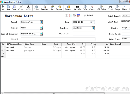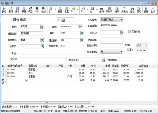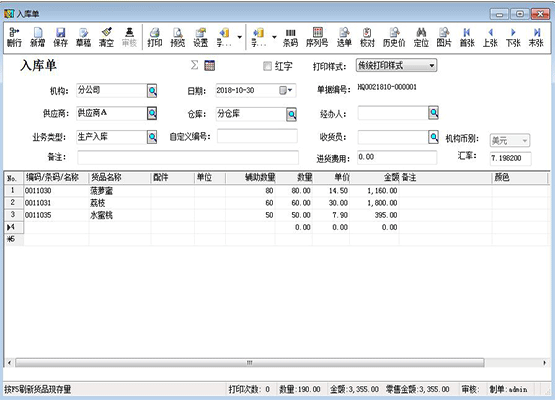 集成多门店前台POS收银功能,同时支持批发、零售业务,支持条码管理。